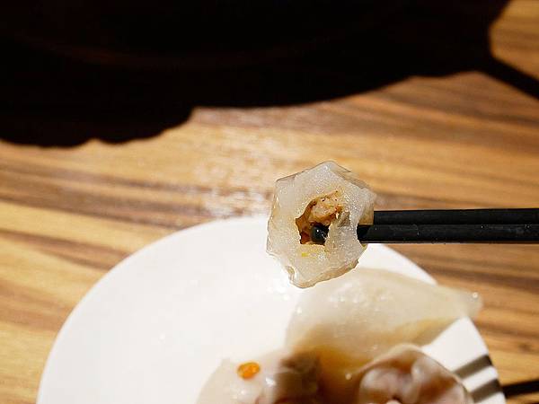 店家這款水晶餃的餃皮相當Q彈有嚼勁,內餡的豬肉用大量胡椒去調味