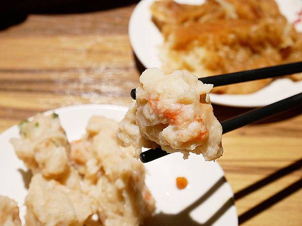 蝦漿內除了新鮮的蝦子之外還有荸薺,所以吃起來口感很有層次