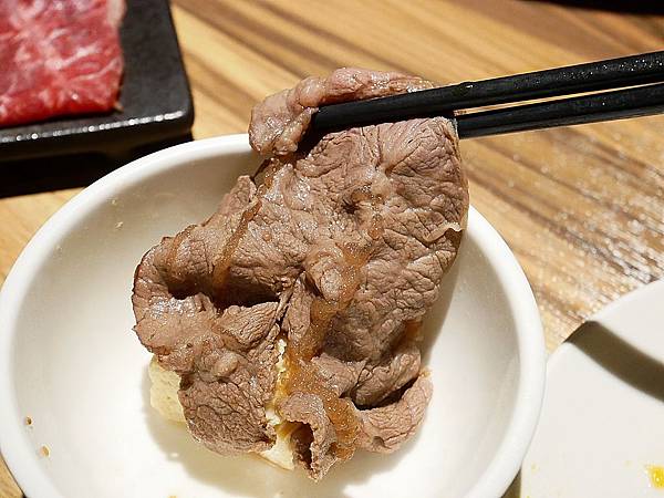 每片肉切得不會太厚,且經過炙燒,即便選用脂肪含量高的肉品,吃起來也完全不油膩