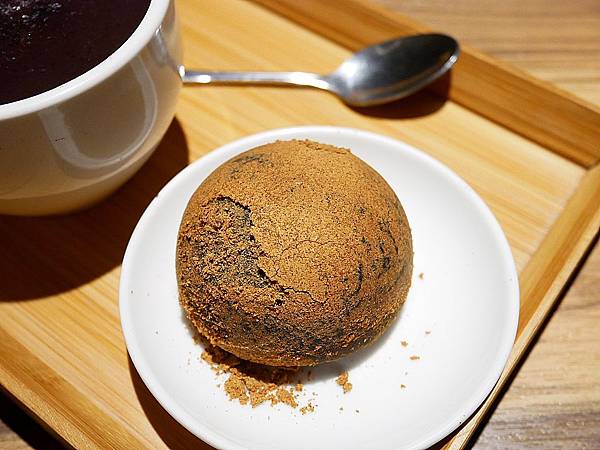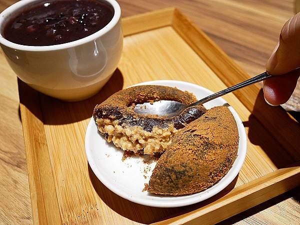 這個麻糬的SIZE還不小,源滾滾的外層裹著黑豆粉,乍看之下很可愛