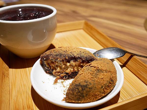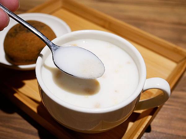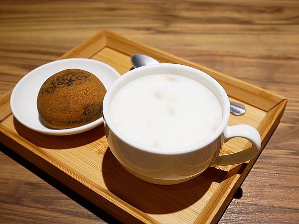 杏仁茶和松子的搭配很奇妙,這杯杏仁茶喝起來不甜,所以還挺順口