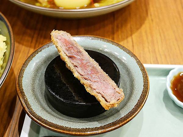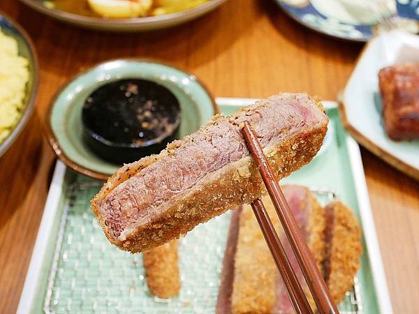 牛排的麵衣酥脆不油膩,而肉質細緻好咬好入口,幾乎不帶筋