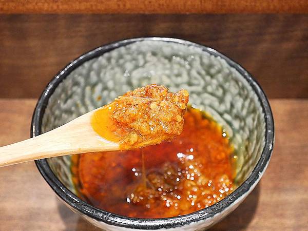 雖然二鬼麵舖大部分的麵已經是辣味的,但肯定有嗜辣狂人覺得不夠過癮。沒關係!! 店家在桌子上擺放一大碗麻辣醬,不夠辣就自己加,想吃多少放多少,連男友吃麻辣鍋還要再加辣椒這樣的等級都覺得夠味