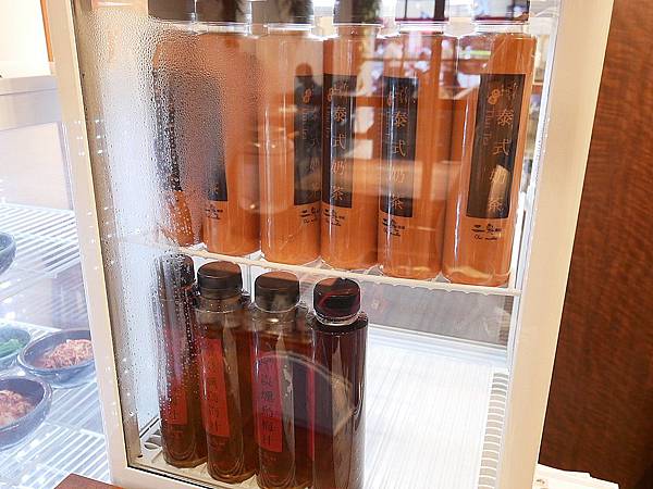 櫃檯旁邊有一個小冰箱,裡面放了店家自己熬煮的泰奶跟烏梅汁,本來點完餐,看了太心動立刻再來一瓶