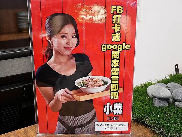 既然是大品牌旗下的麵店就不能不講究,除麵食外,店家也販售小菜,小菜用保鮮膜包起來而且都放在冰箱中,相當整潔,目前店家推出打卡送小菜的活動,可以從韓式泡菜和小黃瓜二選一