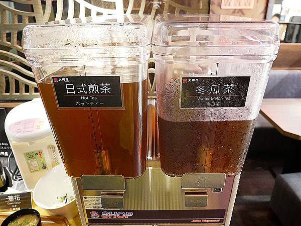 除了冰的冬瓜茶之外,還貼心準備熱的日式煎茶