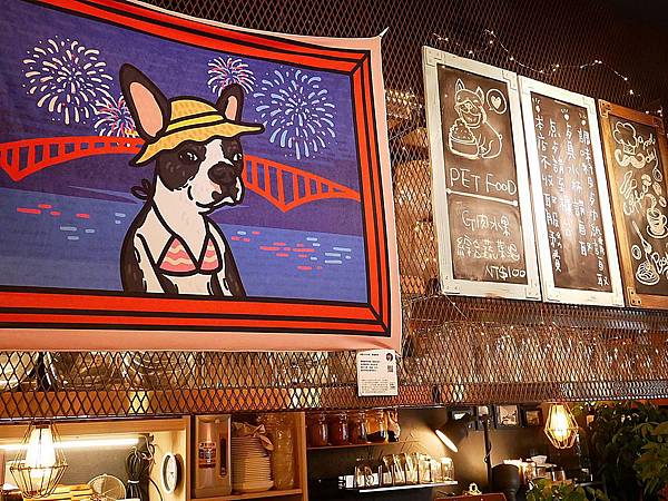 櫃檯上方有法鬥的圖,我猜這應該是店狗,因為好多東西都有他的身影