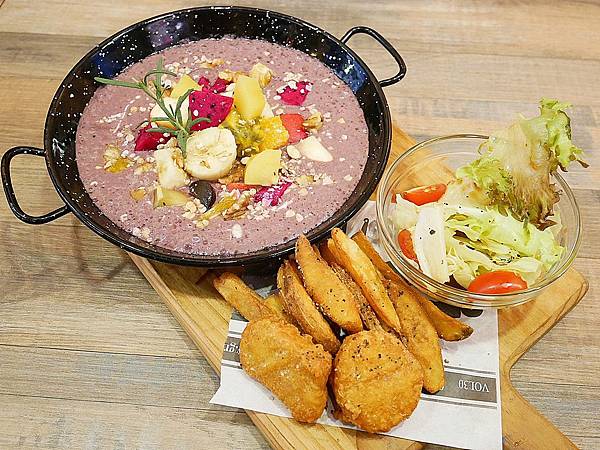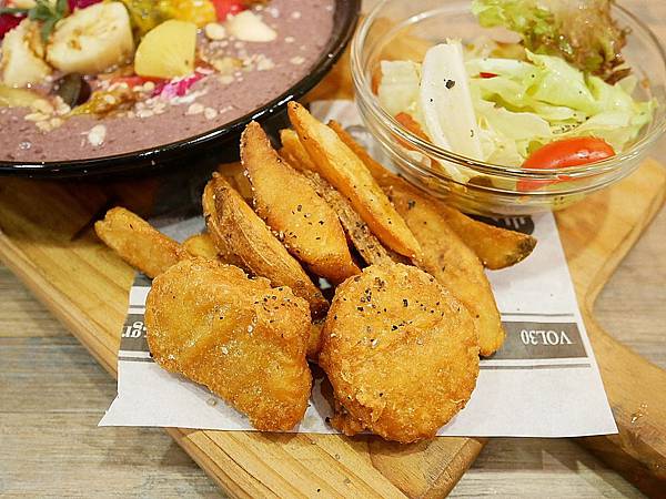 只是賈福廚房的巴西莓果碗除了附生菜之外,竟然還有炸物,很神奇的組合