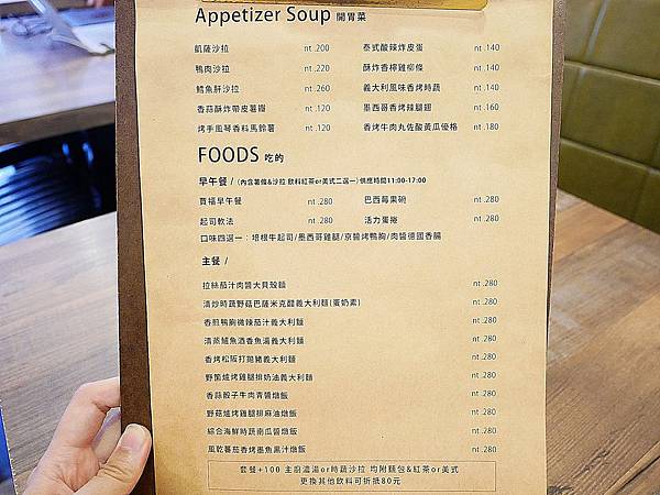 主餐加$100可以升級套餐,套餐包含湯品/沙拉二選一、麵包、紅茶/咖啡二選一