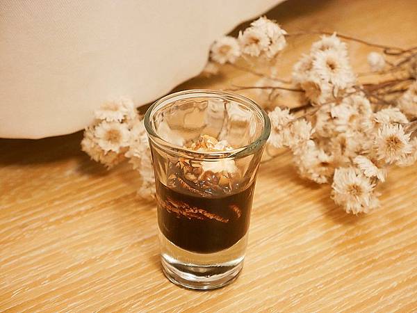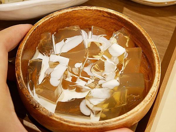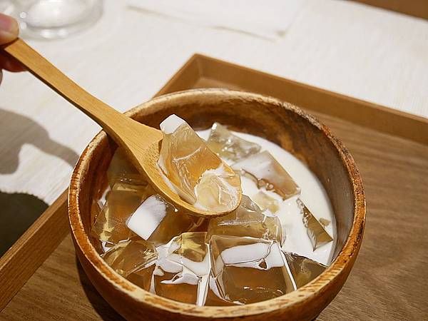 蜂蜜茶凍使用福壽梨山茶製成的茶凍,入口相當滑順,茶味濃郁而且會回甘