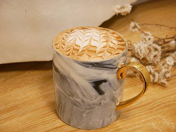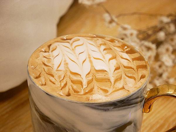 這款飲品超美,不管是杯子的大理石紋或是上頭的焦糖拉花都吸睛
