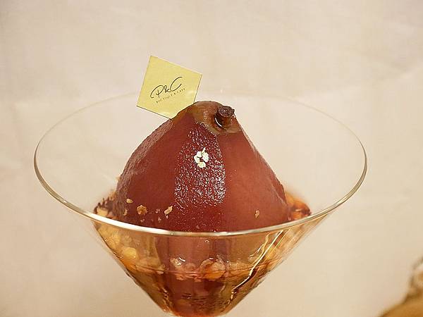 店員有向我們介紹吃法,一開始單吃西洋梨,接著可以沾旁邊附的巧克力一起享用