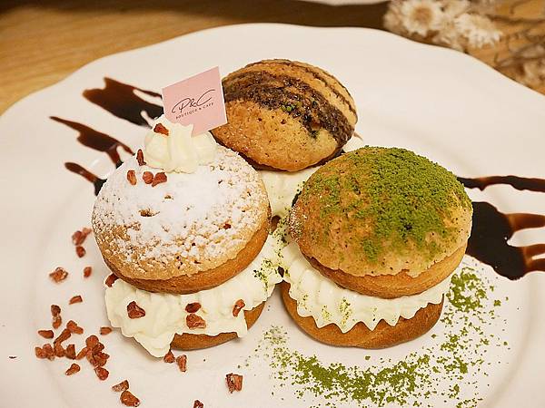 這款泡芙共有三種口味,包含巧克力、抹茶、蔓越莓