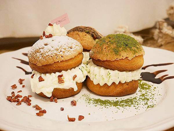 泡芙中間除了奶香濃郁不油膩的鮮奶油外,還有各種口味的卡士達醬