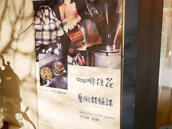 牆上貼了一張海報,上頭提到咖啡拉花藝術體驗課