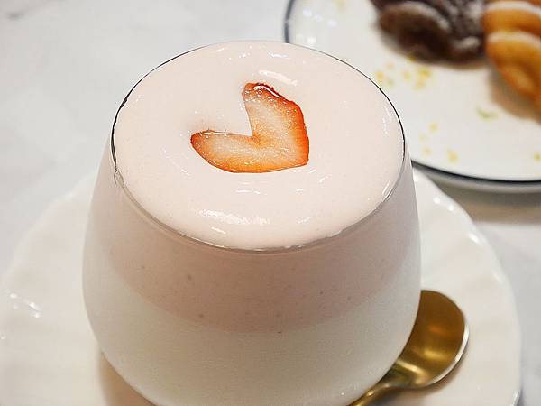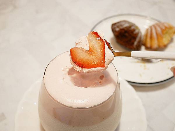 草莓奶蓋跟一般奶蓋不大一樣,質地比較厚重,像是硬的鮮奶油