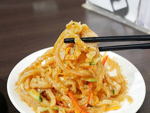 涼拌魚皮吃起來微酸辣,口感非常Q彈厚實有嚼勁