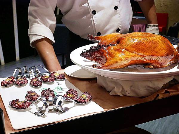 烤鴨可以依照人數選擇各種吃法,主廚還會到桌邊現場表演片鴨秀