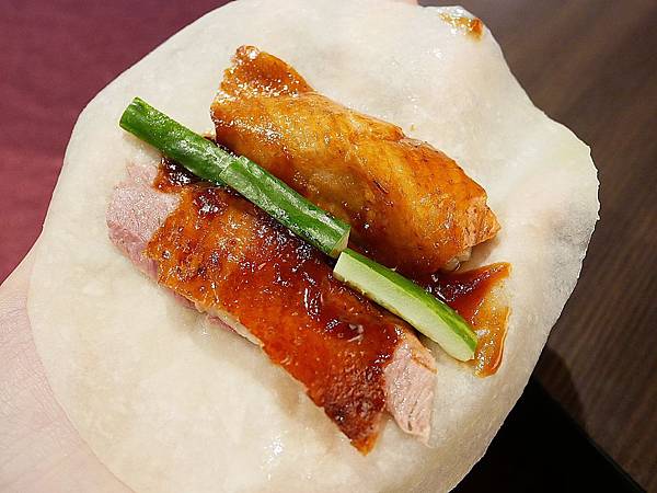 鹹甜不厚重的醬汁、爽脆的黃瓜、脆口又帶點脂肪的烤鴨堪稱完美組合