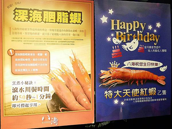 如果生日當月出示證件,即可得到一隻特大天使紅蝦!!