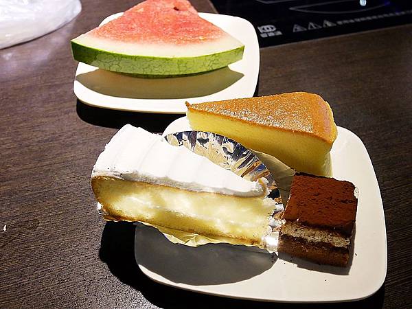 他說店家的蛋糕口感還不錯,吃完一盤又再戰兩塊蛋糕
