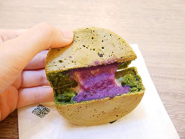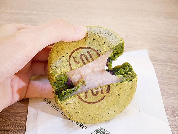 抹茶的外皮搭配芋泥和紫薯餡,多層次的香氣和風味瞬間覺得很超值