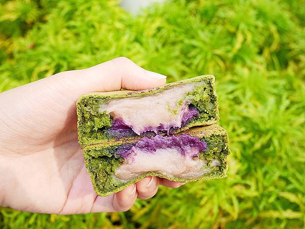 紫色的餡料搭配綠油油粉漿超美超療癒