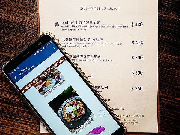 Ombre的菜單是純文字,如果想要看圖的朋友可以翻到最後一頁掃QR.code