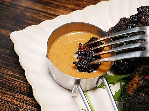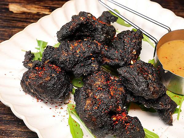 黑嚕嚕的炸雞視覺感超誘人,麵衣酥脆完全不油膩,而肉質相當細緻,入口完全不乾柴