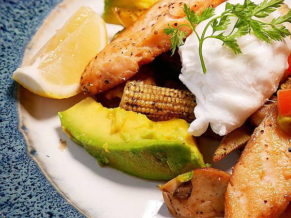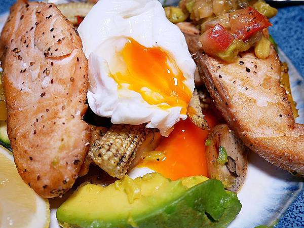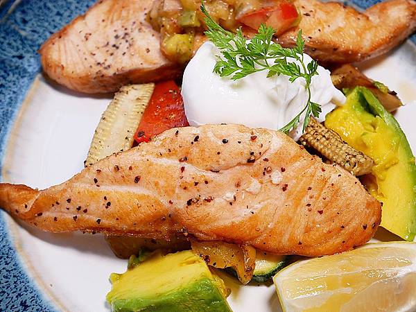 這道是早午餐系列,原本想選別款,不過看到圖片秒變心,因為鮭魚好大塊好誘人