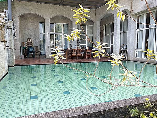 游泳池就在民宿正中間,闆娘說這是活水不加氯的游泳池