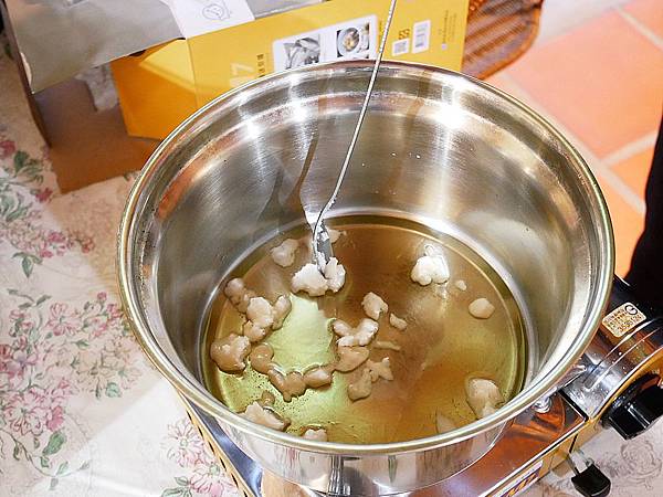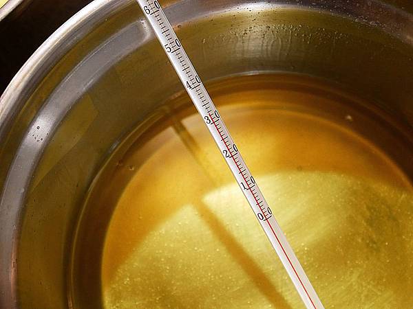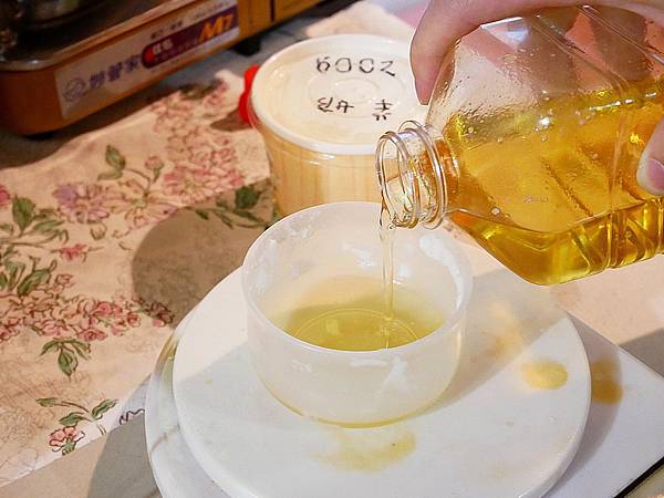用小火將羊油慢慢煮到融化後,就能將剩下的植物油都加入