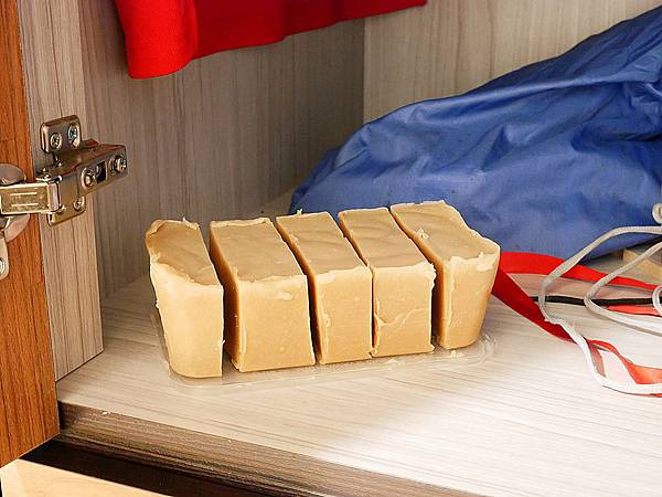 闆娘有提醒我們要記得把肥皂切成適度大小,並放在衣櫃等陰涼處保持通風
