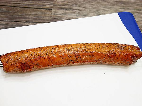 外層是烤到上色的鴨皮,裡面則是粉色細緻的鴨肉,超長一條想吃多少切多少