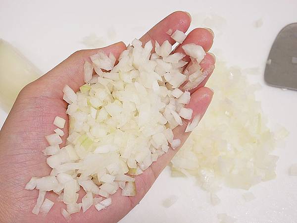 將洋蔥切成小丁,加完水就可以直接下洋蔥,接著再放入適量的鴨賞