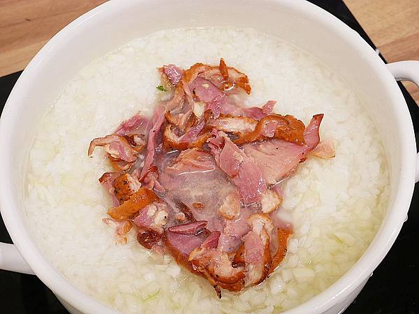 因為怕調味太無聊,所以切半顆洋蔥一起進去煮,粥的味道會更鮮甜