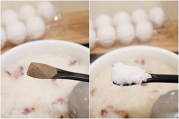 等粥煮到糊的時候,就可以依照自己的洗好調味,我是加點胡椒和鹽巴