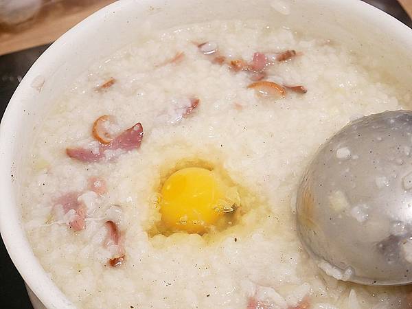 為了增加香氣和風味,再打顆蛋進去,直接攪拌到跟粥融為一體就好