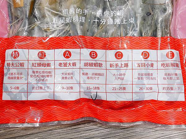 前幾級的蝦子會用印有LOGO的袋子包裝,也會在底下名卻勾選品項