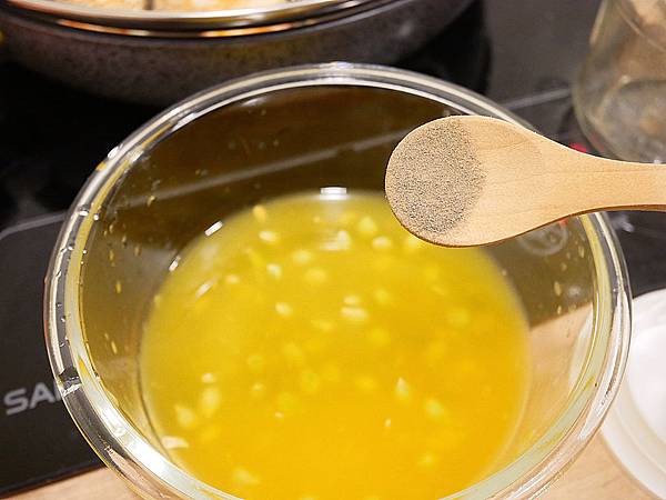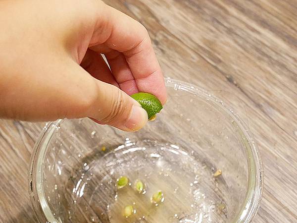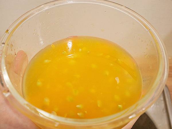 把金桔的果汁榨出來,怕酸的朋友可以加點糖,再放一些胡椒調味,攪拌均勻待用