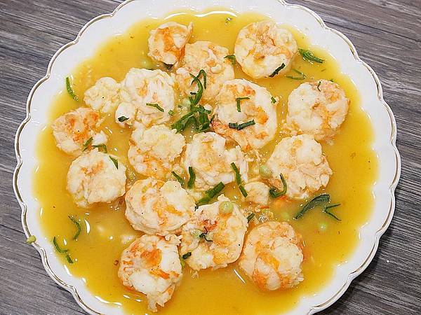 上頭簡單灑些蔥花點綴,超美味的金桔蝦就上桌啦