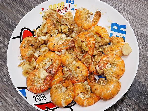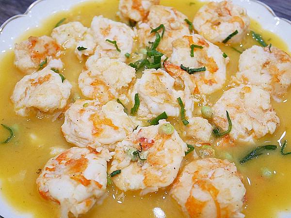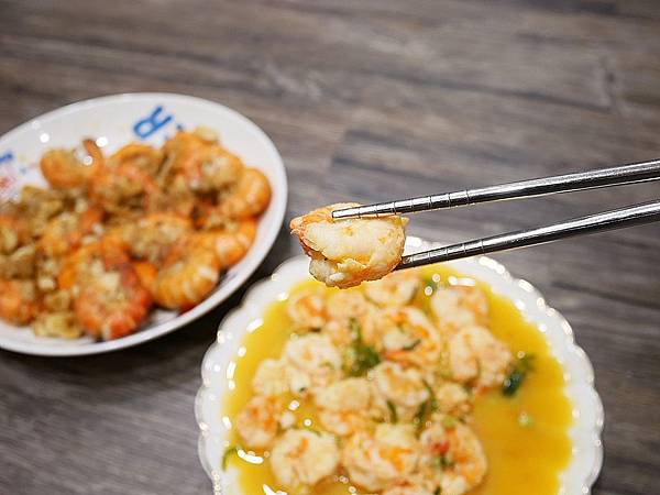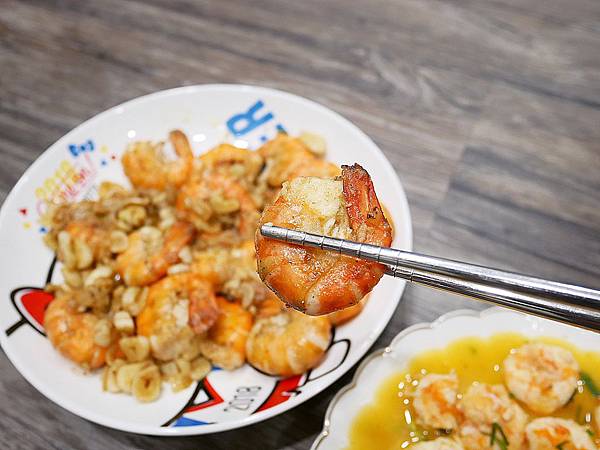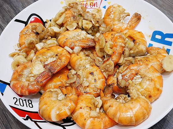 奶油蝦吃起來一點也不油膩,而且不加鹽就超好吃,蒜頭跟洋蔥吸附醬汁超下飯