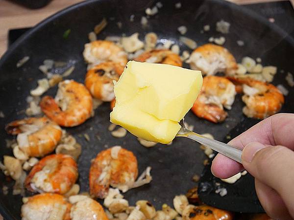 記得要讓蝦子在鍋中努力翻騰,每一個角落都要沾到奶油才夠味
