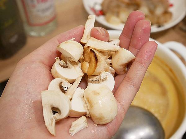 如果有想搭配耐煮的食材也沒問題,像我就放一點磨菇進去,不耐煮的就晚一點放