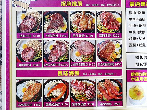 金毫客的牛排選擇還不少,也提供多種海鮮和肉品