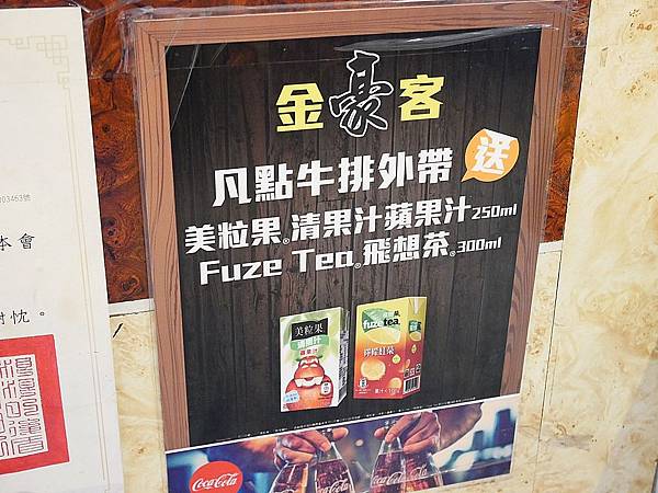 如果外帶牛排,店家會送一瓶果汁,算是彌補吃不到冰淇淋的遺憾