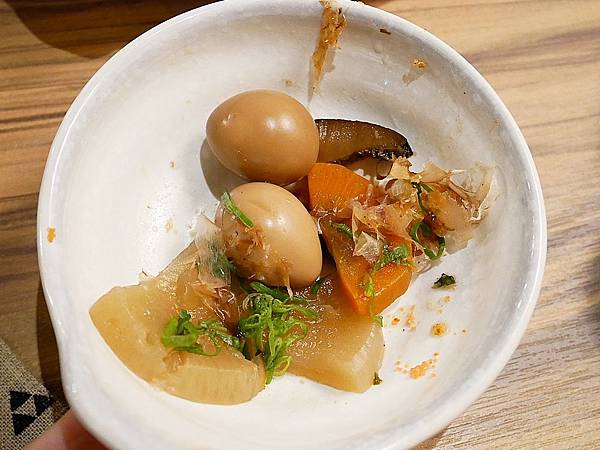 上頭的柴魚因為熱氣奔騰而在盤中舞蹈著,裡面料不少,包含紅蘿蔔、白蘿蔔、鳥蛋等等