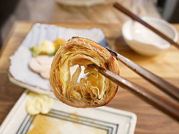 豬肉捲在各串燒店或日式居酒屋都能發現其身影,但串燒野崎的太捲燒還是頭一次看到