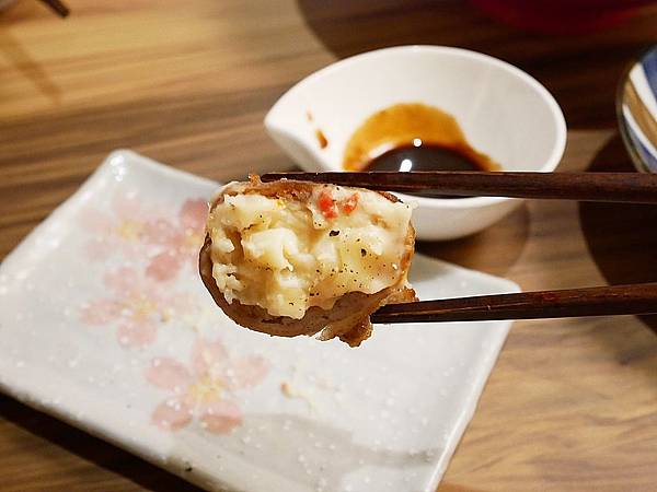 中間的南瓜有炸過,所以口感軟嫩細緻卻不會太爛,重點是完全不油膩