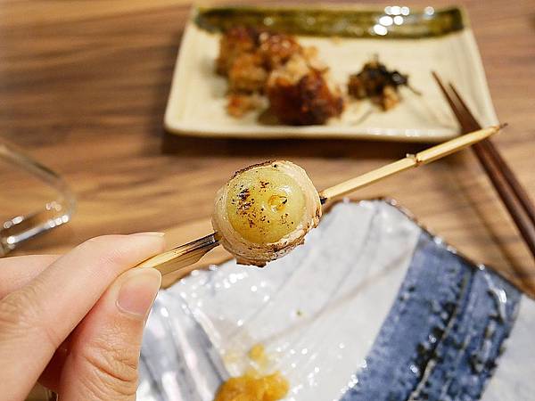 中間夾入厚厚一層美生菜,層層堆疊而成口感很棒,屬於非常清爽的一款串燒